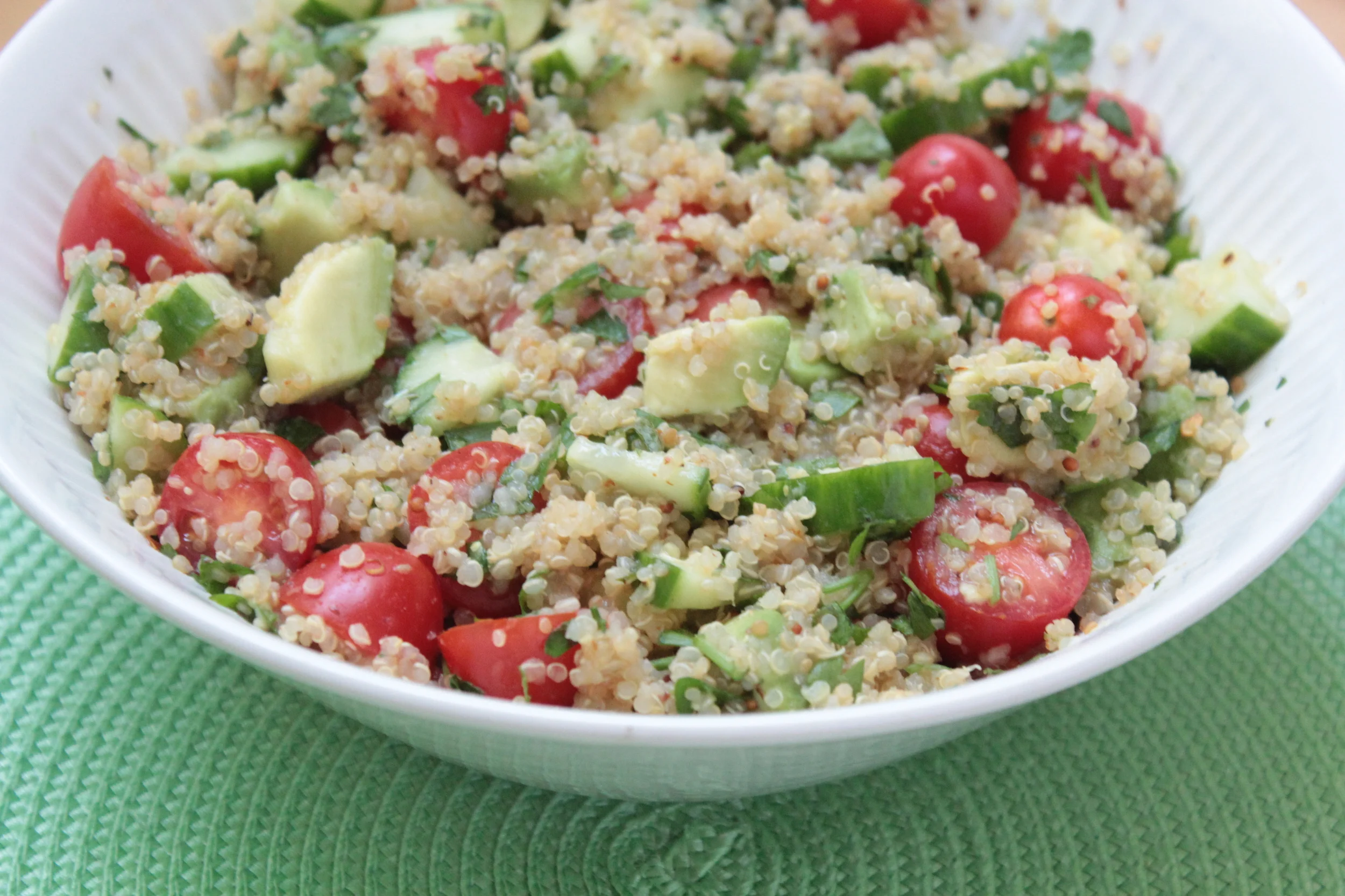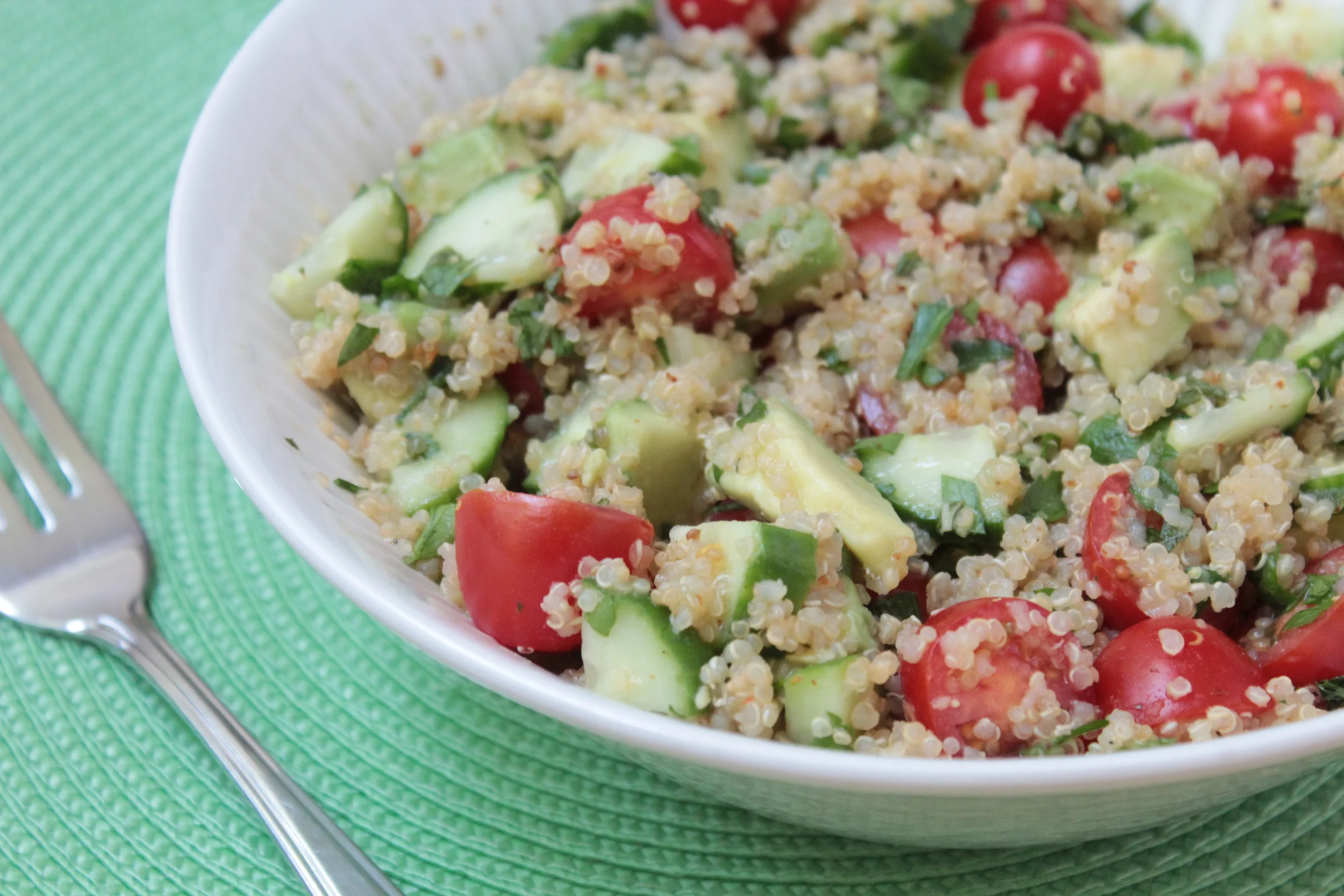 2. Combine the quinoa, tomatoes, cucumber, avocado, and parsley.