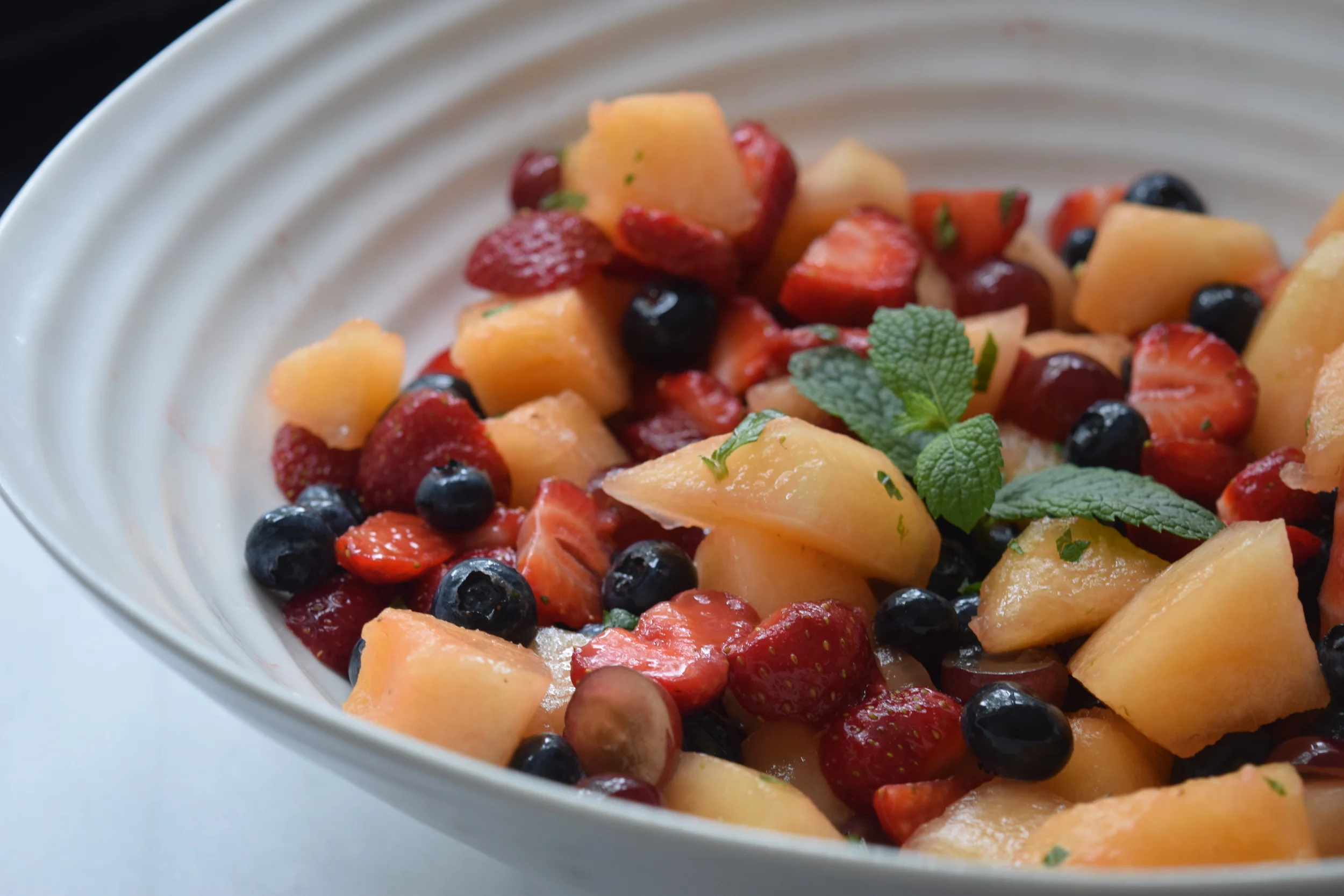 1. Combine the chopped melon, grapes, strawberries, and blueberries in a large bowl.