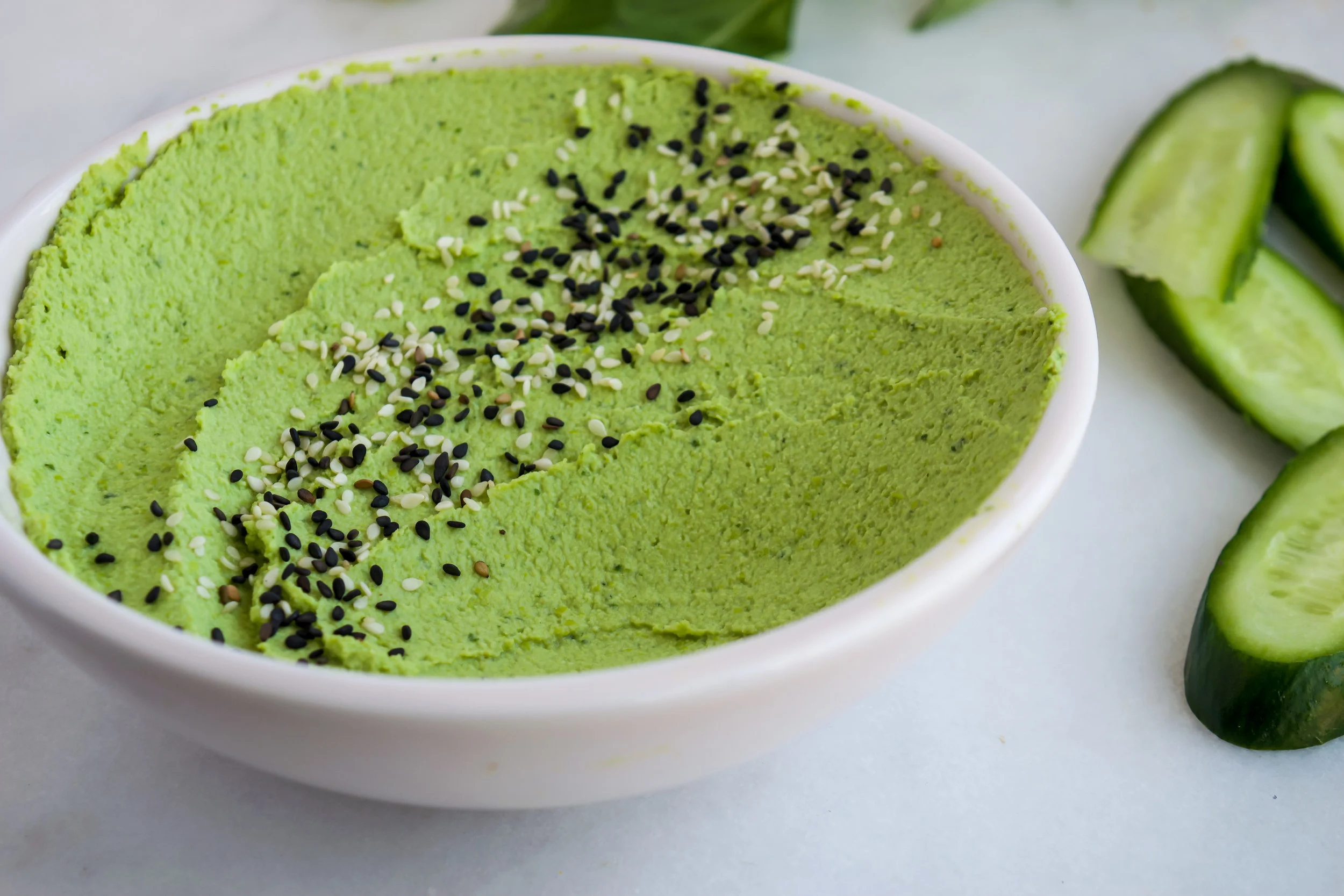A protein-packed dip and veggies is one easy way to keep hunger at bay, but my hummus recipe is a two-day process, so I decided to make this easy edamame dip instead. It’s just 5 ingredients and comes together in a snap in the blender. The basil gives it a flavour reminiscent of pesto and it’s just garlickey enough.