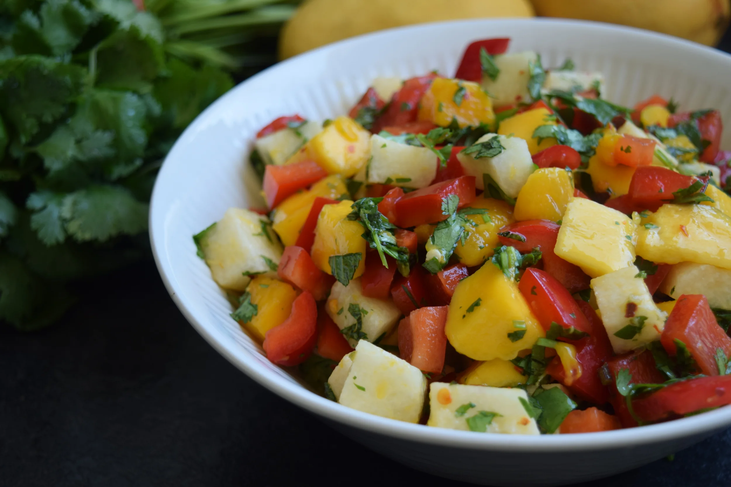 Grilled Corn, Peach & Avocado Salad with Jalapeno-Yoghurt Dressing